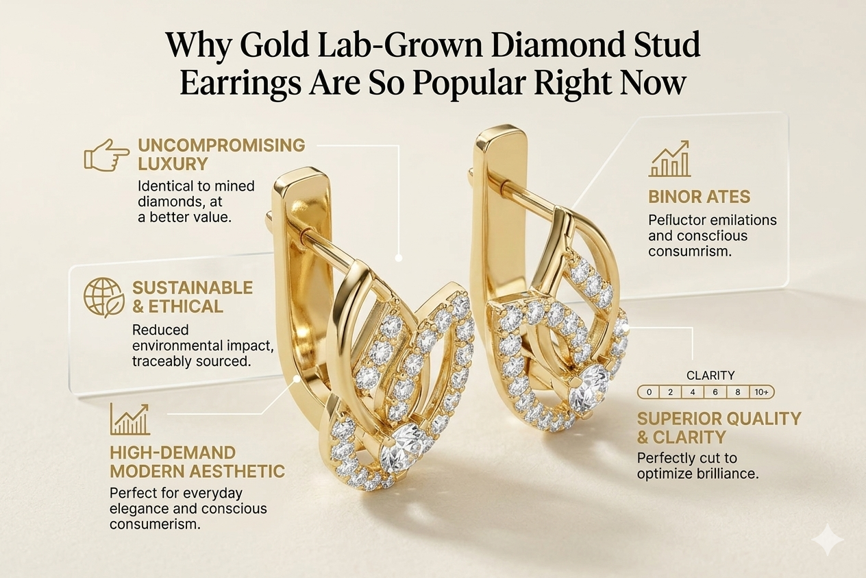 Gold lab-grown diamond stud earrings have become one of the most popular jewelry trends because they perfectly combine luxury, sustainability, and versatility. Their timeless design allows them to complement a wide variety of outfits, while lab-grown diamonds offer an ethical and affordable alternative to traditional diamonds.