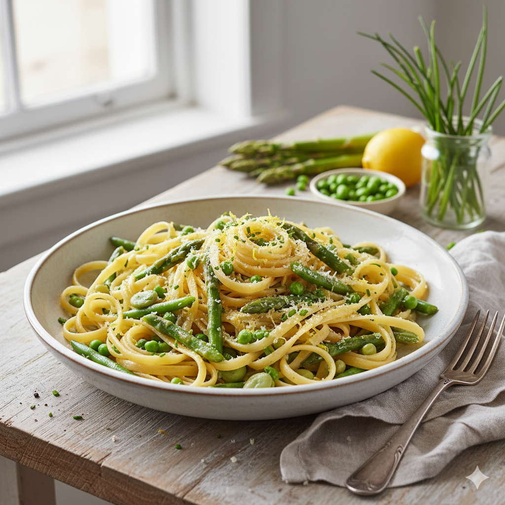 Sunshine on a Plate: Spring Vegetable Tagliatelle with Lemon-Chive Sauce